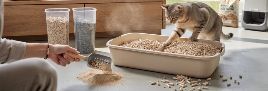 Si votre chat est habitué à une litière minérale agglomérante, une transition progressive est recommandée. Mélangez d’abord 25% de granulés de bois à sa litière habituelle, puis augmentez la proportion chaque semaine, jusqu’à atteindre 100% de pellets. Observez sa réaction : gratte-t-il normalement ? Entre-t-il dans le bac sans hésitation ? En cas de refus net (urines à côté du bac, marquage dans d’autres pièces), revenez temporairement à l’ancien substrat avant de réessayer plus progressivement.